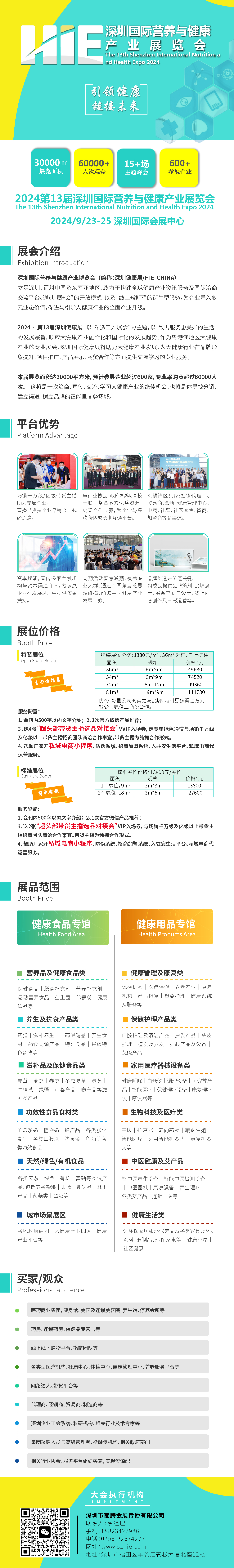 2024第十三届深圳国际营养与健康产业博览会 The 13th Shenzhen International Nutrition and Health Expo 2024 2024深圳健康展以“塑造三好展会”为主题,以“致力服务更好的生活”的发展宗旨,顺应大健康产业融合化的发展趋势。作为粤港澳地区大健康产业的专业展会,深圳国际健康展将助力大健康产业发展,为大健康行业在品牌形象提升、项目推广、产品展示、商贸合作等方面提供交流学习的专业服务。