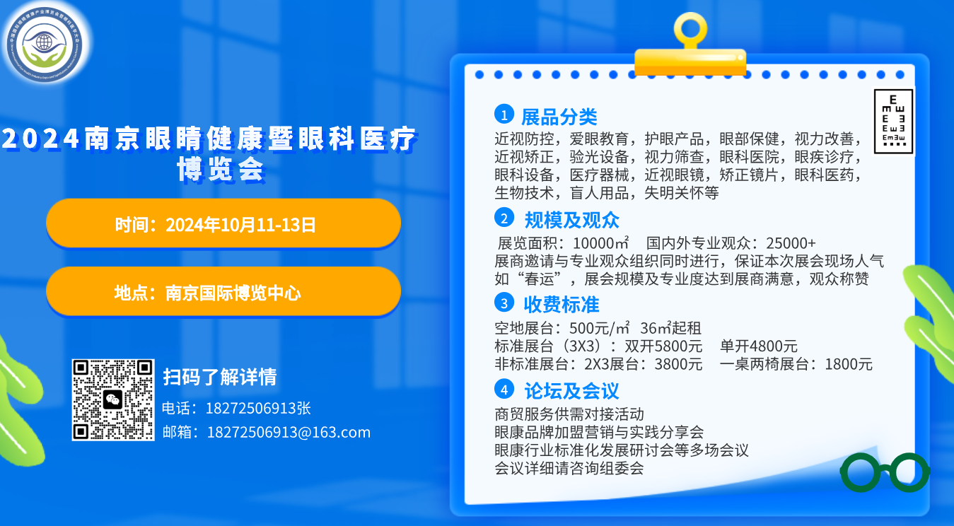 2024全国眼睛健康产业博览会暨眼科医学大会 National Eye Health Industry Expo and Ophthalmic Medicine Conference 2024年10月11-13日 南京国际博览中心