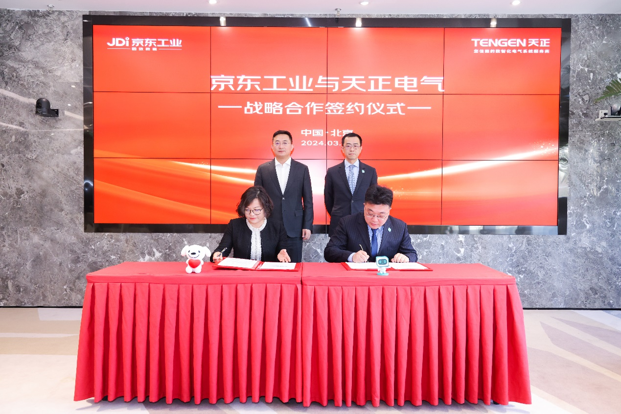 3月19日,天正电气(605066.SH)与国内知名的工业供应链技术与服务提供商京东工业在北京举行战略合作签约仪式。京东集团副总裁、京东工业CEO宋春正,天正电气轮值总裁周光辉出席活动并致辞,京东工业行业采销部总经理胡劲与天正电气副总裁杨明明代表双方签约。天正电气市场部总监冰峰、天正电商业务负责人凌静等见证签约。协议约定天正将与京东工业进行数据对接,共建数智化供应链。