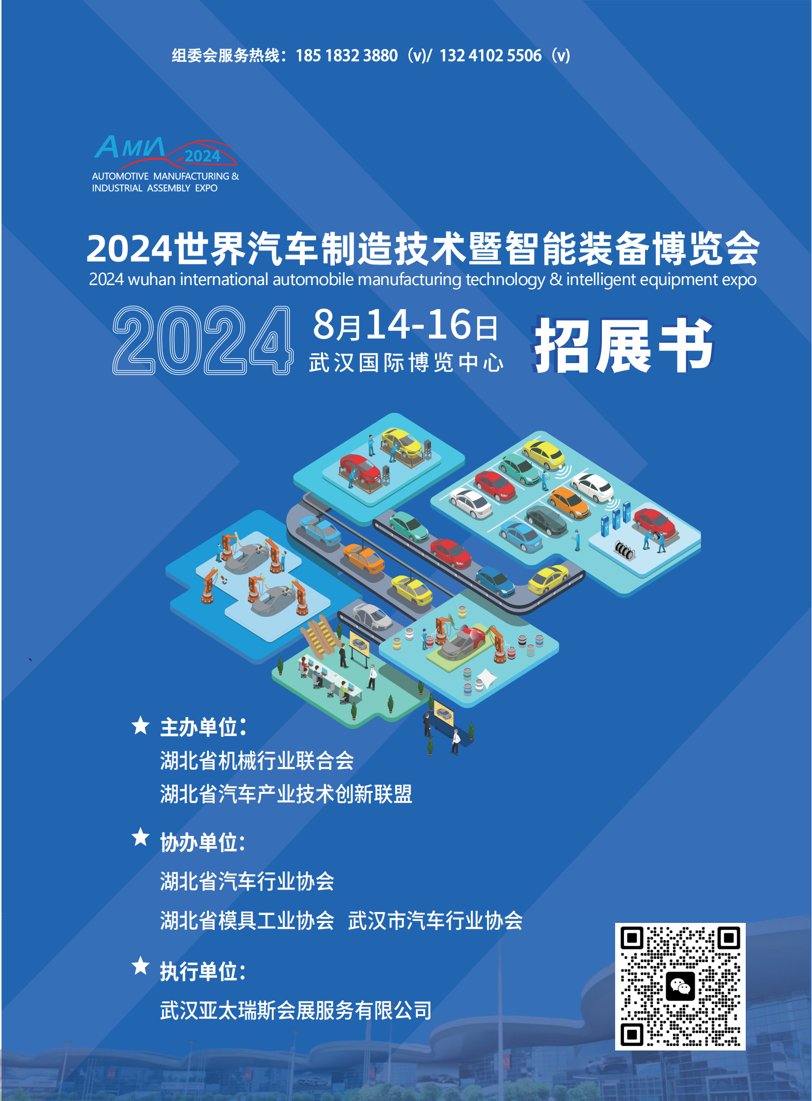 世界汽车制造技术暨智能装备博览会简称 “汽车制博会”,目前已与��个国家大使 馆、六十多个商协会建立长期合作关系,该展会在行业内享有良好的声誉,颇有口碑,被誉 为汽车领域前市场的风向标。本届展会由武汉市经济和信息化局指导,中国汽车工程学会 汽车制造分会、湖北省机械行业联合会、湖北省汽车产业技术创新联盟、湖北省汽车行业 协会、武汉新能源汽车产业协会、武汉企业信息化促进会联合主办,北京亚太瑞斯会展服务 有限公司承办,以“集结精良装备,创高品质汽车之源”为主题,汇聚来自世界各地科研及 工业领域的专家学者,集中展示国际最顶级的汽车工业尖端技术及解决方案,进一步提升 国际化规格,延续了展会一年一个新台阶的成长轨道,秉承综合性、专业化的发展原则,打 造中国汽车制造全产业链”一站式"采购平台。 ����世界汽车制造技术暨智能装备博览会预设室内展览面积 � 万平方米,预计参展 企业���家、专业观众�万人次。按照室内室外相呼应、静态展示动态体验相融合、线上线下 相结合推动以汽车制造、汽车零部件、汽车电子、新能源汽车智能网联、锂电池技术、线缆 线束、汽车焊接、 内外饰、轻量化、涂装、汽车模具、工业自动化装备、内部物流、数控机床与 金属加工、工业测量技术等领域有关技术的加速融合,与世界各国汽车产业相互赋能、协 同发展、形成互融共生、互利共赢的产业发展新格局。