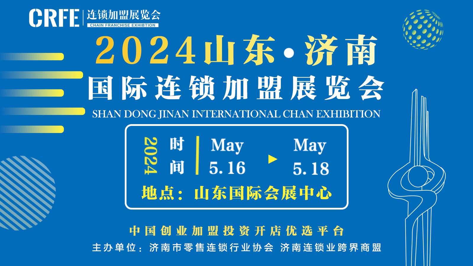 CRFE2024山东(济南)国际连锁加盟展览会 2024.5/16-18 山东国际会展中心 邀 请 函 支持单位:济南市人民政府、山东工业和信息化厅 主办单位:济南市零售连锁行业协会 济南连锁业跨界商盟 承办单位:北京环宇餐创国际展览有限公司 山东国际会展管理有限公司 协办单位:全球加盟网 e加盟 开店邦 重点开拓:鲁、冀、豫、陕、鄂、皖、晋、苏 市场渠道