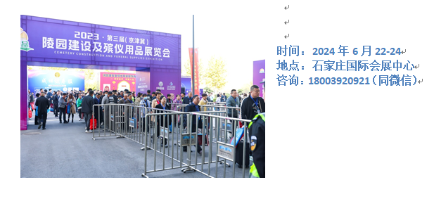 2024第四届(京津冀)陵园建设及殡仪用品展 时间:2024年6月22-24 地点:石家庄国际会展中心 展会咨询:18003920291
