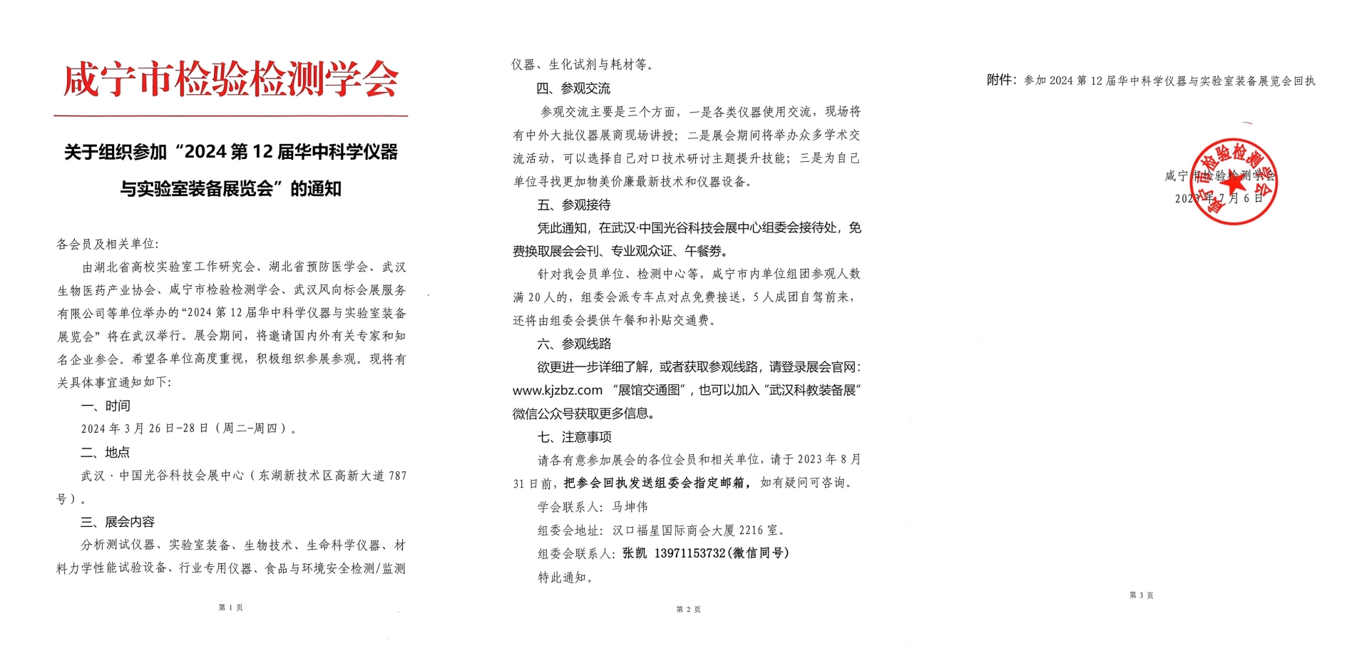 咸宁市检验检测学会组织参加2024武汉科学仪器展会通知