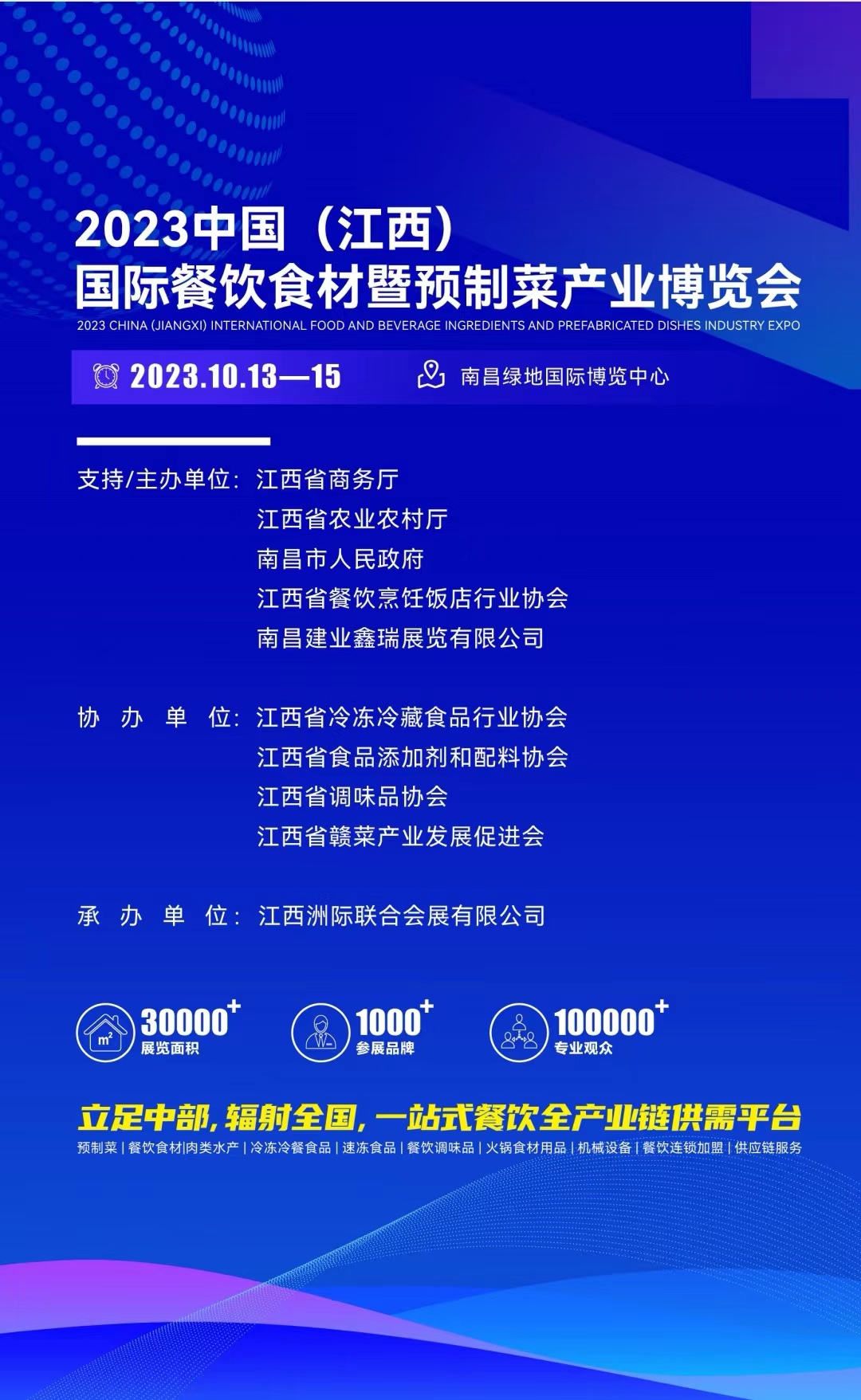 2023中国(江西)餐饮食材展暨预制菜产业博览会”将于11月24日-26日在江西南昌绿地国际会展中心隆重举行!本次展会由江西南昌建业鑫瑞展览有限公司承办,1000家餐饮品牌 ,聚焦预制菜革命,旨在深度探索和思考预制菜行业,助推预制菜赛道跑出国民级品牌。