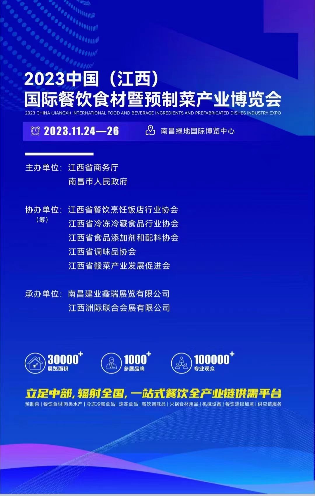 “2023中国(江西)餐饮食材展暨预制菜产业博览会”将于11月24日-26日在江西南昌绿地国际会展中心隆重举行!本次展会由江西南昌建业鑫瑞展览有限公司承办,1000家餐饮品牌 ,聚焦预制菜革命,旨在深度探索和思考预制菜行业,助推预制菜赛道跑出国民级品牌。