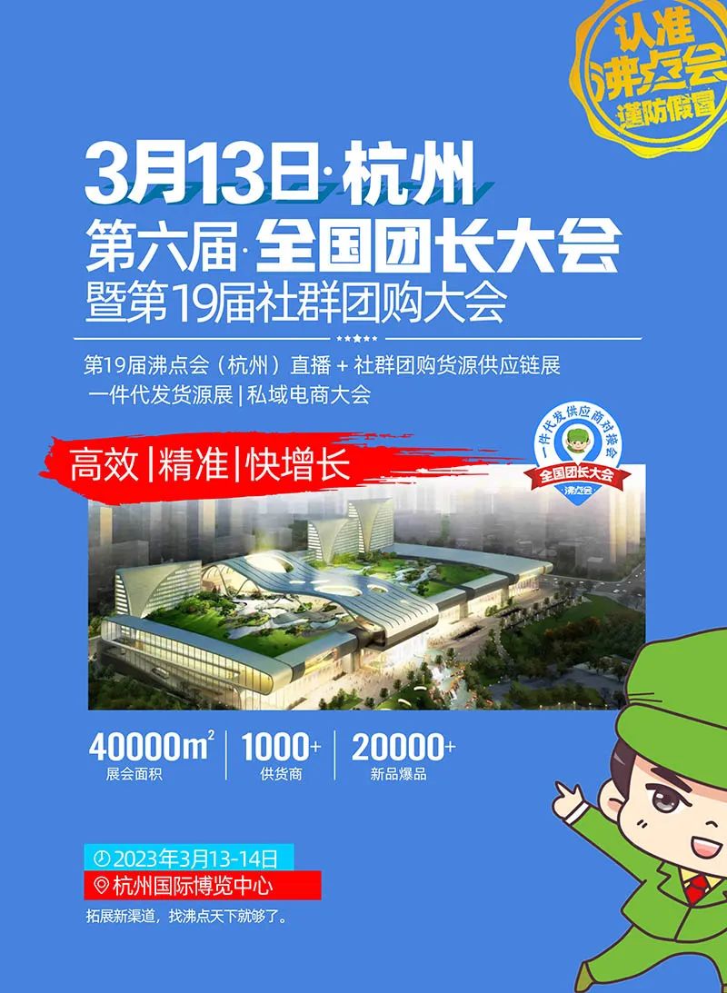由沸点会展主办的2023春季服装一件代发货源展将于2023年3月13-14日在杭州国际博览中心举办,同期举办第6届全国团长大会,第18届沸点会,沸点私域大会。 沸点会展多年深耕社群,团长赛道,具有丰富的行业资源与赛道经验。本届展会将汇聚服装行业最新流行服饰及流行趋趋势,以“新渠道带来新增长”为主题,破传统服装行业痛点,链接社群&团长新渠道,带来销售新增长!