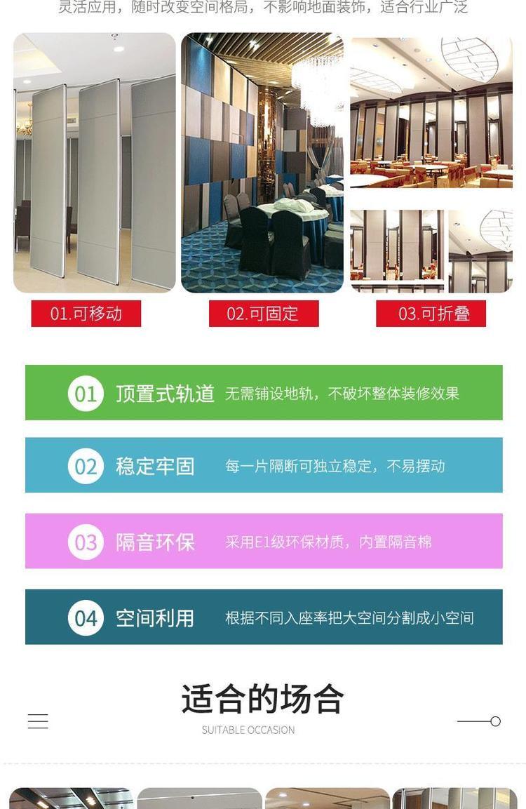 酒店活动隔断墙大小灵活、随时可变,悬挂式移动折叠隔断墙