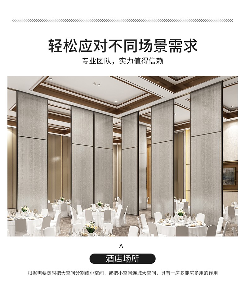 酒店活动隔断墙大小灵活、随时可变,悬挂式移动折叠隔断墙