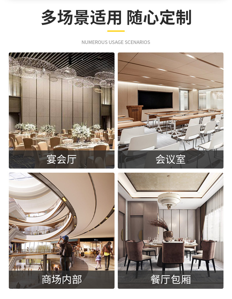 店活动隔断的选择多种多样,根据酒店的需求使用不同种的隔断,选择适合酒店风格的隔断,会给酒店带来更多的灵气。活动隔断巧妙地运用在酒店的各个场所,带来了各种方便,美观,深受广大客户的喜爱。