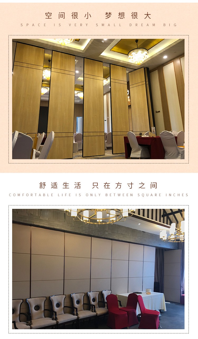 2、活动隔墙板由高硬度铝合金为框架,高强度的钢制骨架、橡胶、隔音棉及饰面板组成。