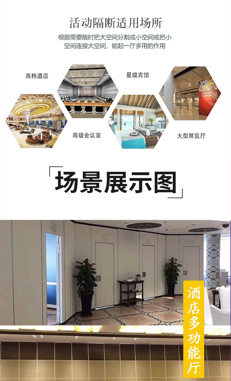 酒店活动隔断墙大小灵活、随时可变,悬挂式移动折叠隔断墙
