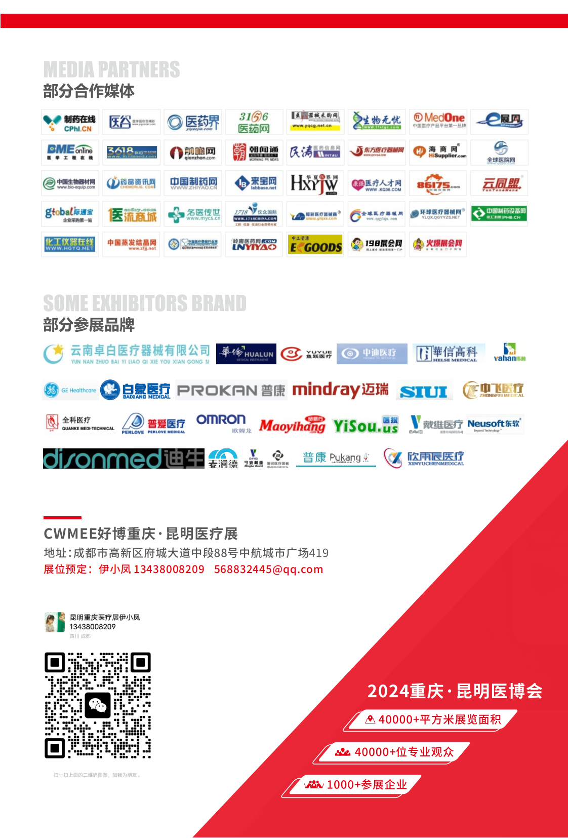 CWMEE中国中西部(重庆、昆明)医疗器械展自创办至今,重庆医博会已成功举办31届,昆明医博会已成功举办12届,已为西南地区医疗服务市场带来了近千家优质的医疗器械及耗材的生产制造服务商。展会着重突出资源整合优势,推动西南地区医疗服务产业链发展及优化,将继续构建高质量的行业贸易和学术交流平台。