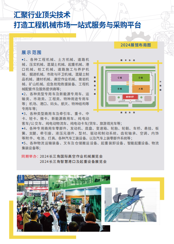 1、各种工程机械、土方机械、道路机 械、压实机械、混凝土机械、起重机械、港 口机械、桩工机械、道路施工与养护机 械、掘进机械、市政与环卫机械、混凝土制 品机械、建材机械、高空作业机械、凿岩机 械、矿山机械、应急抢险救援装备、工程机 械配套件及服务提供商等;