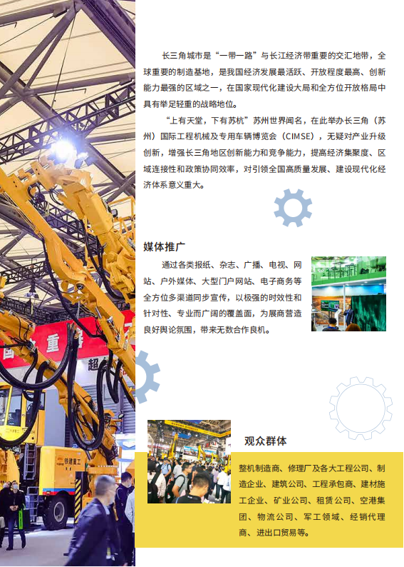 “上有天堂,下有苏杭”苏州世界闻名,在此举办长三角(苏州)国际工程机械及专用车辆博览会(CIMSE) ,无疑对产业升级创新,增强长三角地区创新能力和竞争能力,提高经济集聚度、区域连接性和政策协同效率,对引领全国高质量发展、建设现代化经济体系意义重大。