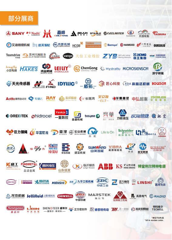 起重机配件:减速器、轴承、齿轮箱、制动器、偶合器、电动滚筒、托辊、输送带、联轴器、电动机、专用电缆及辅件、电气控制箱、变频调速系统、**载限制器、起重秤量、起重电磁铁、起重开关、缓冲器、逆止器、平衡器、减震器、回转支架、弹簧、密封制品、紧固件、橡胶输送带、吊具、绳索、索具、钢丝绳、其他相关辅助配套设备、备件及零部件、软件商、集成商、第三方起重机械检验认证机构等,