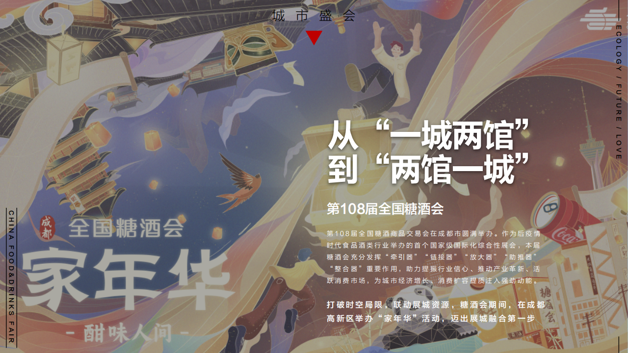 图文详情第110届全国糖酒商品交易会在成都市圆满举办。作为后疫情时代食品酒类行业举办的首个国家级国际化综合性展会,本届糖酒会充分发挥“牵引器”“链接器”“放大器”“助推器”“整合器”重要作用,助力提振行业信心、推动产业革新、活跃消费市场,为城市经济增长、消费扩容提质注入强劲动能。糖酒会打破时空局限,联动展城资源,糖酒会期间,在成都高新区举办“家年华”活动,迈出展城融合第一步。