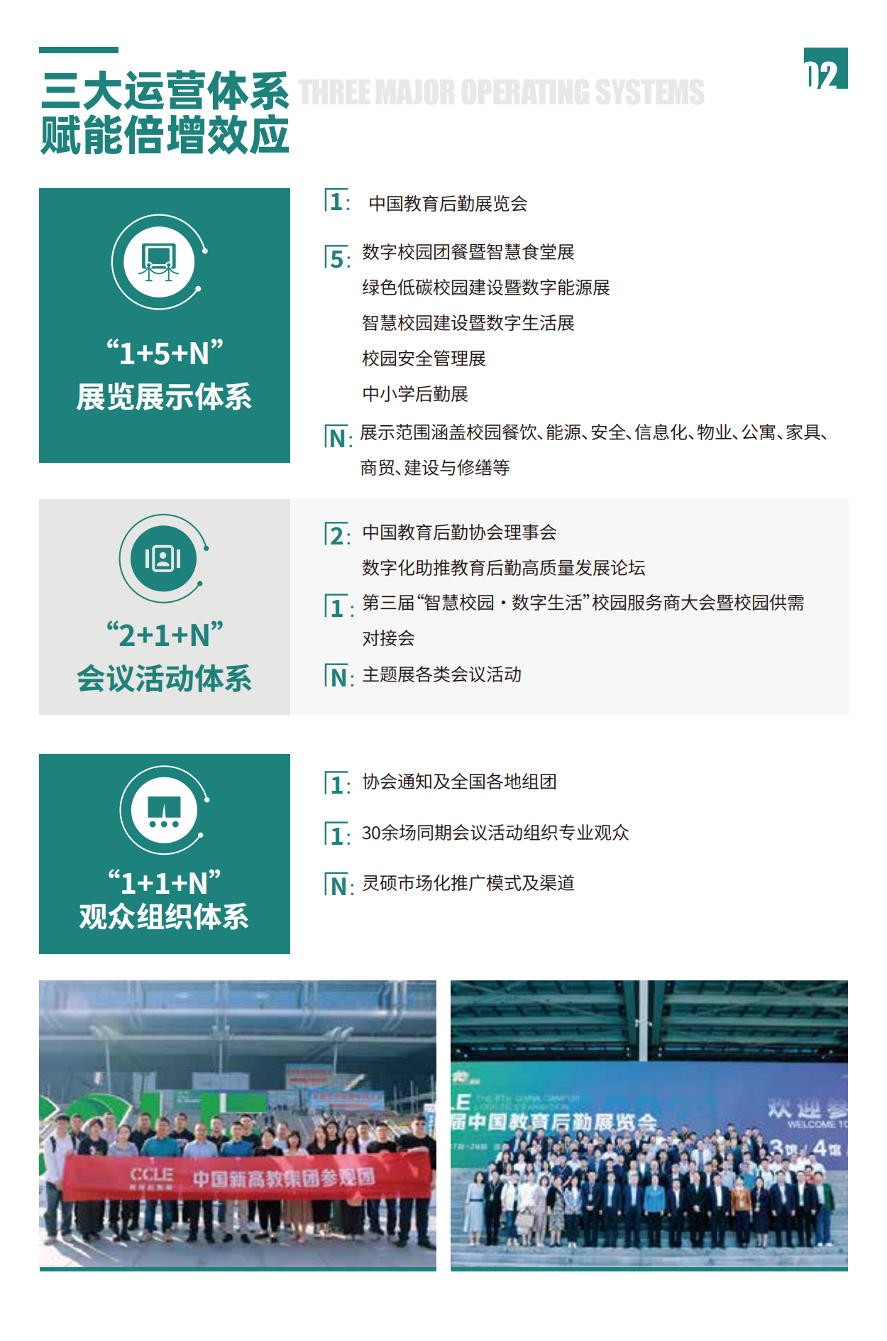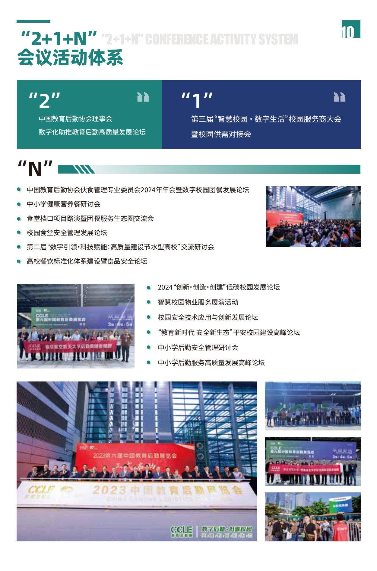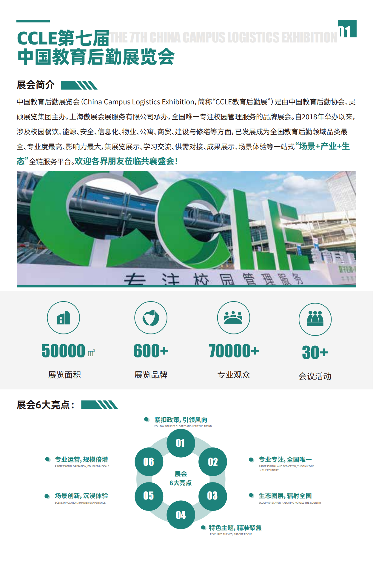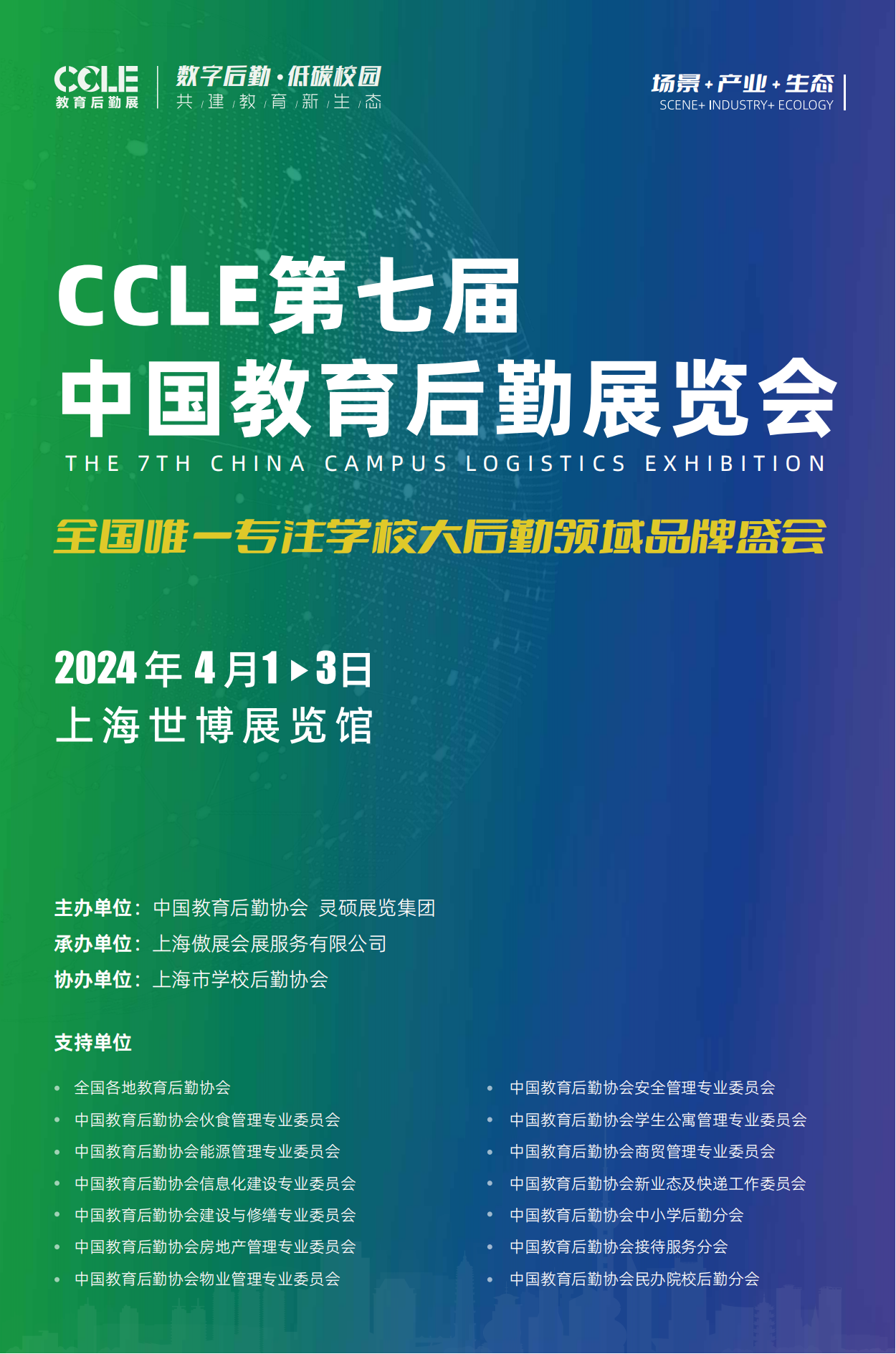 图文详情中国教育后勤展览会(China Campus Logistics Exhibition,简称“CCLE教育后勤展”)是由中国教育后勤协会、灵硕展览集团主办,上海傲展会展服务有限公司承办,全国唯一专注校园管理服务的品牌展会。自2018年举办以来,涉及校园餐饮、能源、安全、信息化、物业、公寓、商贸、建设与修缮等方面,已发展成为全国教育后勤领域品类最全、专业度最高、影响力最大,集展览展示、学习交流、供需对接、成果展示、场景体验等一站式“场景+产业+生态”全链服务平台。欢迎各界朋友莅临共襄盛会!
