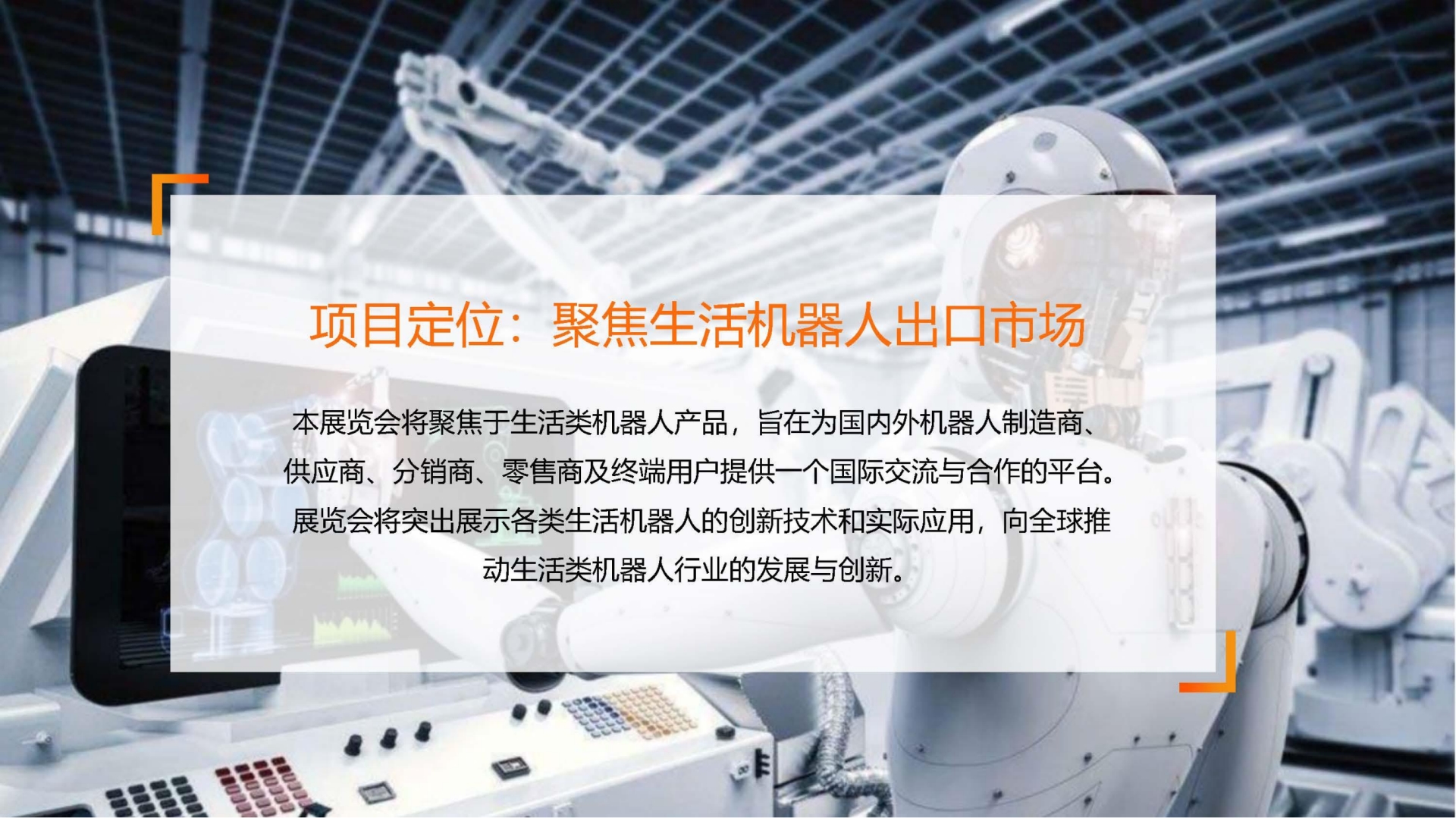 本展览会将聚焦于生活类机器人产品,旨在为国内外机器人制造商、供应商、分销商、零售商及终端用户提供一个国际交流与合作的平台。展览会将突出展示各类生活机器人的创新技术和实际应用,向全球推动生活类机器人行业的发展与创新。