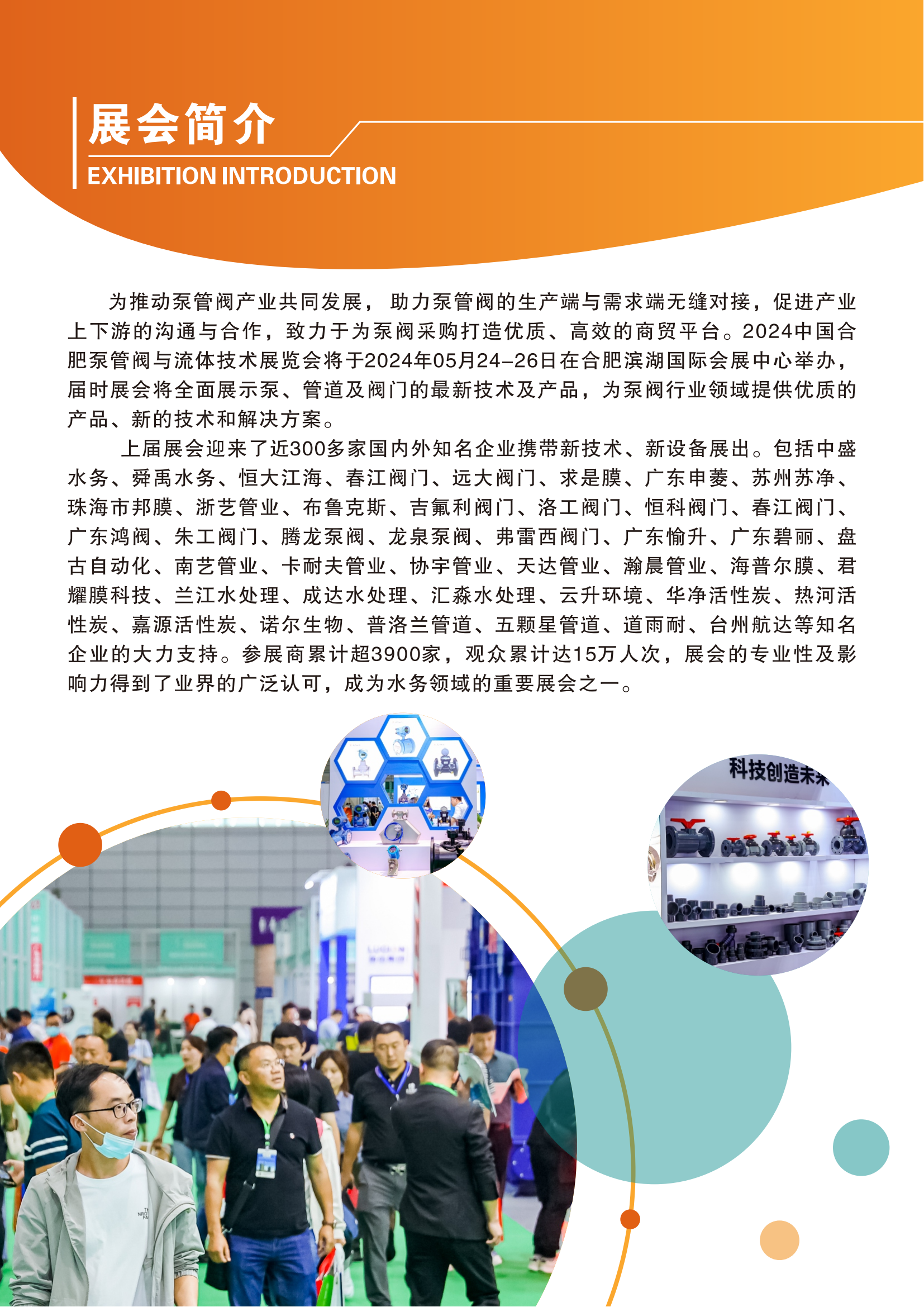 图文详情为推动泵管阀产业共同发展,助力泵管阀的生产端与需求端无缝对接,促进产业上下游的沟通与合作,致力于为泵阀采购打造优质、高效的商贸平台。2024中国合肥泵管阀与流体技术展览会将于2024年05月24-26日在合肥滨湖国际会展中心举办,届时展会将全面展示泵、管道及阀门的最新技术及产品,为泵阀行业领域提供优质的产品、新的技术和解决方案。
