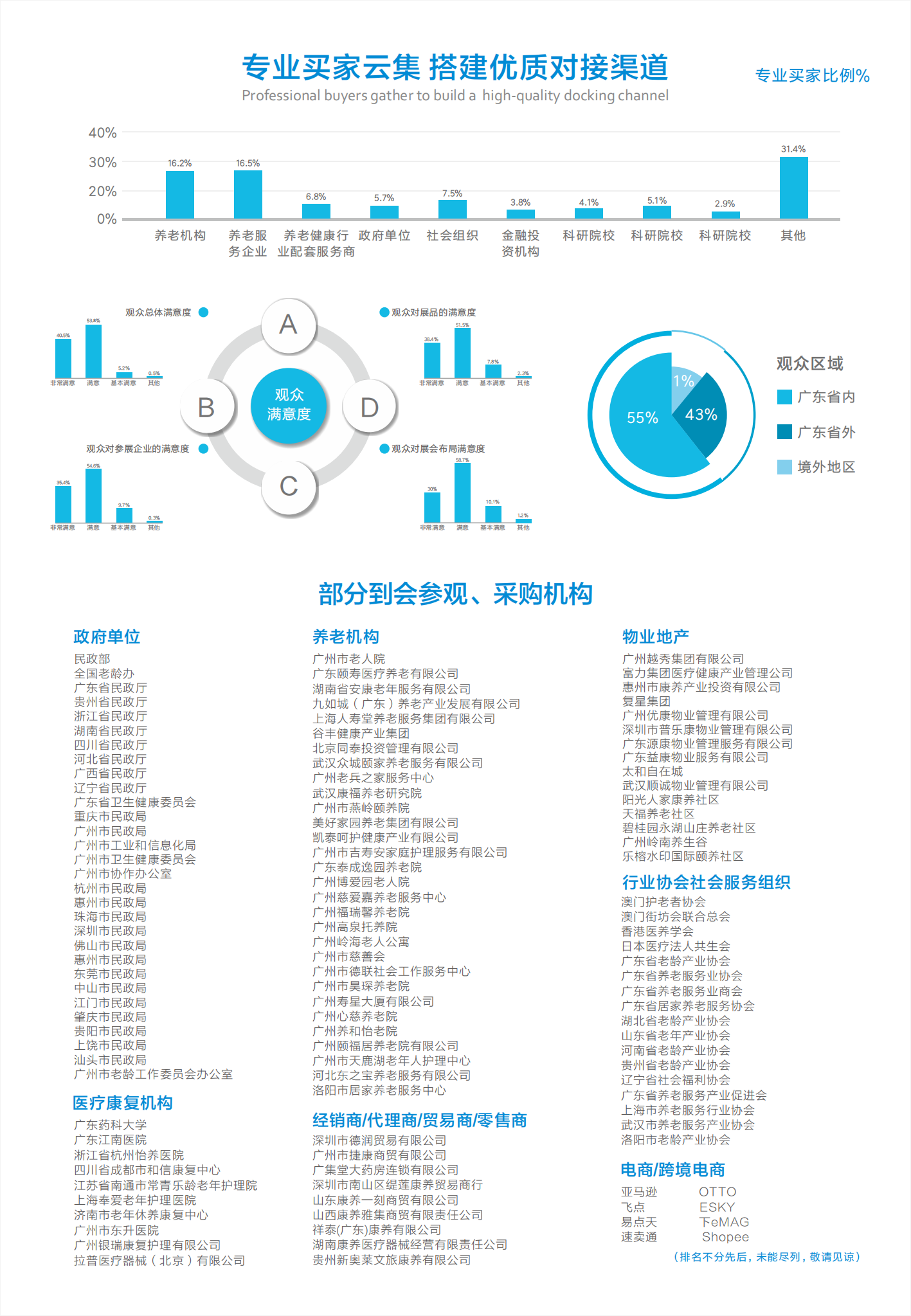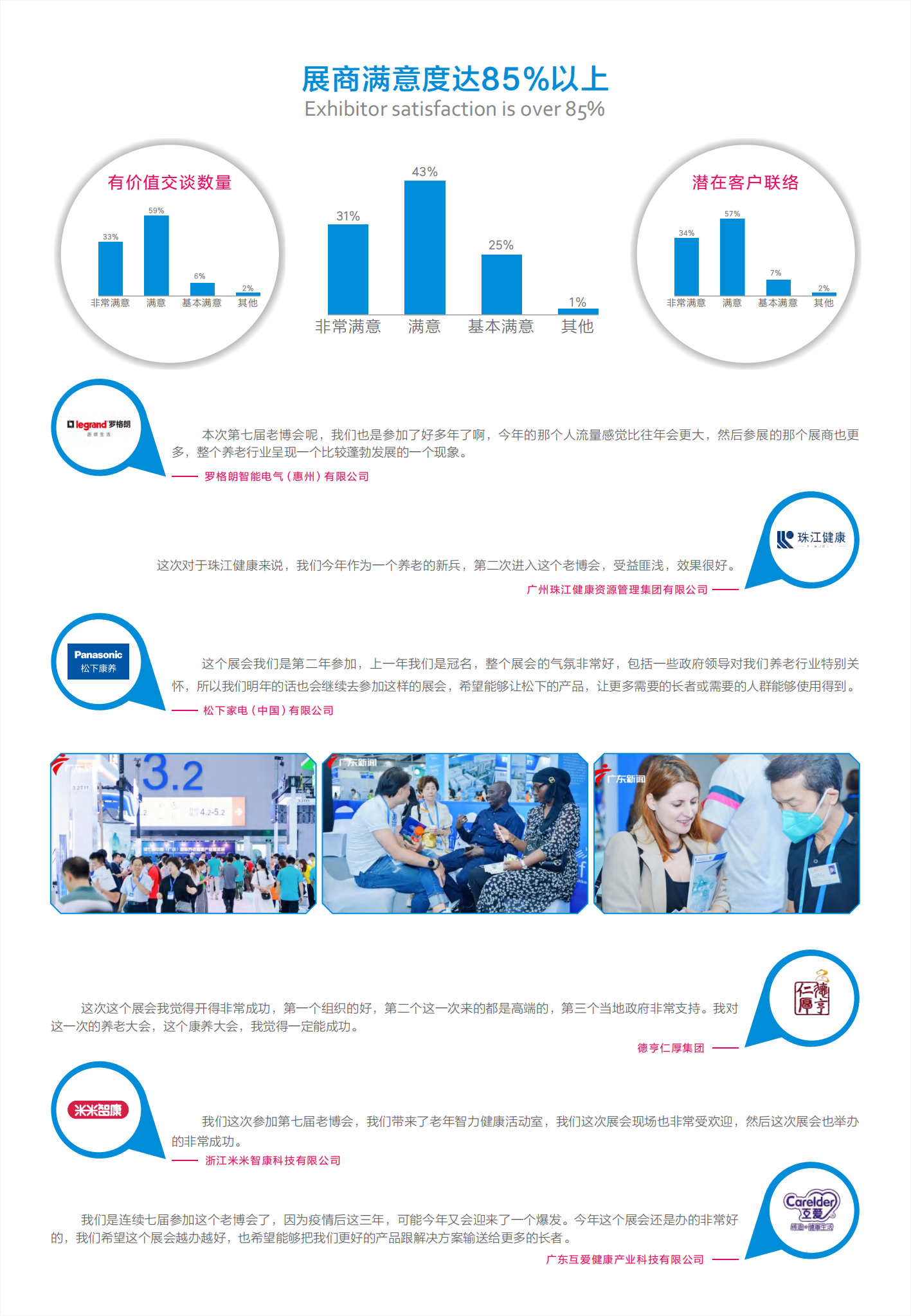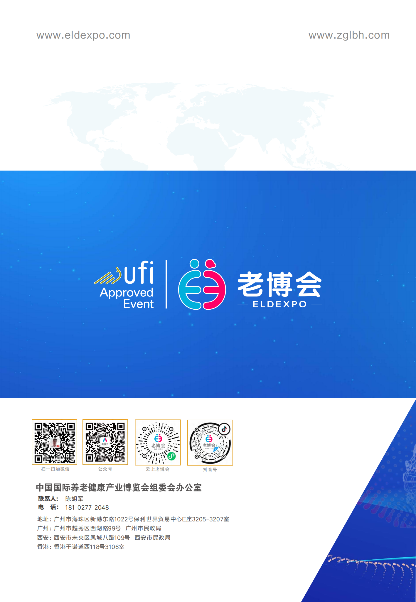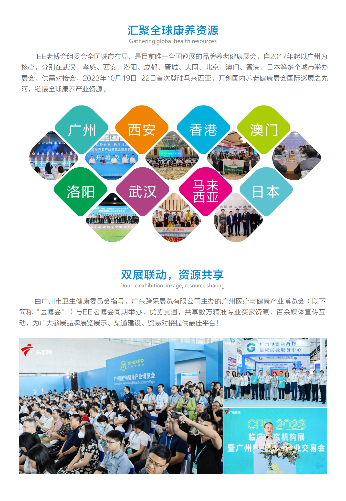 图文详情为贯彻落实积极应对人口老龄化国家战略,国务院印发《“十四五” 国家老龄事业发展和养老服务体系规划》,围绕推动老龄事业和产业协同 发展、推动养老服务体系高质量发展,明确了“十四五”时期的总体要 求、主要目标和工作任务,养老健康产业大有发展空间。 中国国际养老健康产业博览会(简称∶EE老博会)是以围绕国家老龄 事业和养老体系政策全局为导向,在政府主管部门指导下,联合各行业协 会共同举办的行业盛会。 EE老博会聚焦国际养老健康产业发展趋势,依 托市场需求,汇聚全球最前沿的养老健康行业服务、产品、技术及解决方 案等企业,集展览展示、商贸交流、商机采购、资源对接、商务考察等功 能,打造行业一站式国际综合服务平台,致力于成为养老健康产业风向标, 打造中国养老健康产业第一展!