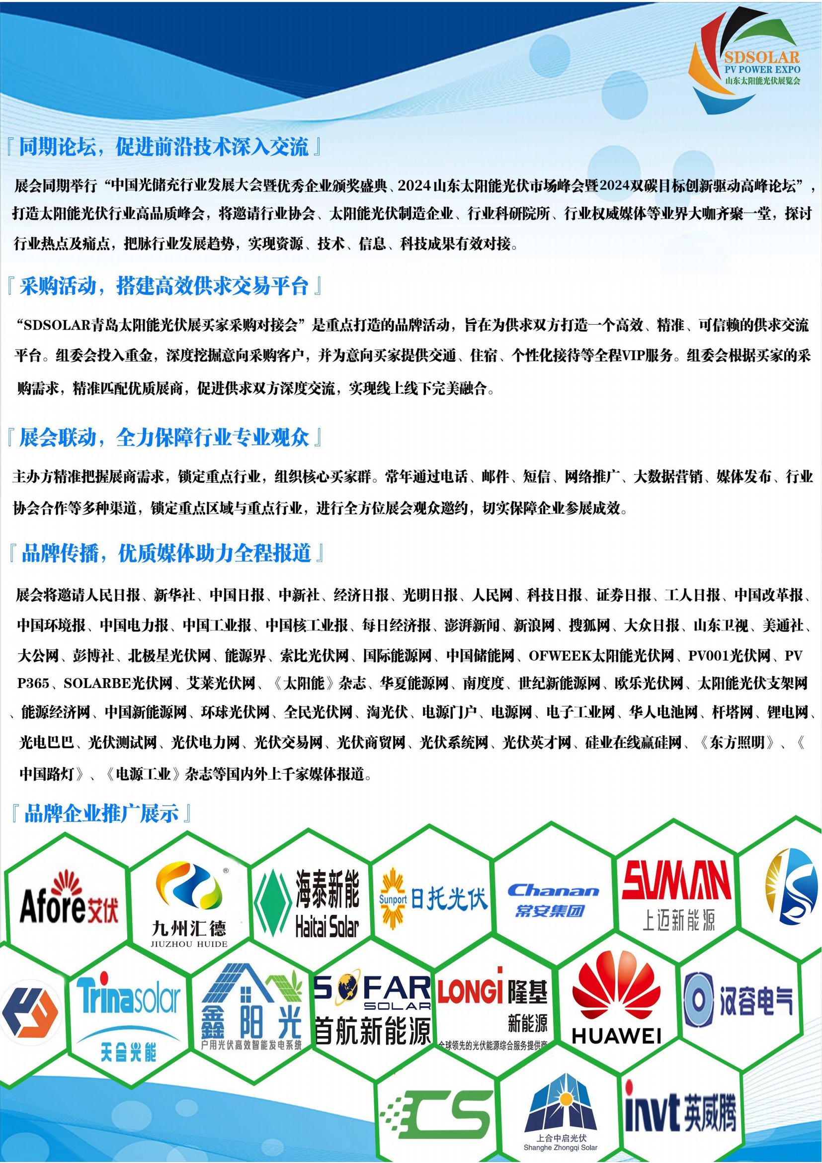 图文详情践行碳达峰、助力碳中和,2023中国(青岛)国际太阳能光伏及储能展览会于2023年9月14-16日在青岛国际博览中心圆满落幕。本届展会规模达11000m,聚集行业产业链百家品牌企业,千种新型产品参与集中展示。展会覆盖光伏、储能、智慧电力、电池、充换电及配套设备、可再生能源等。展会首日吸引了来自全国及海外的数万名采购商参观洽谈,本届展会已成为光储能行业技术交流、信息沟通和贸易合作的重要平台。2024第二届中国(青岛)国际太阳能光伏及储能展览会,将于2024年9月26-28日,在青岛国际博览中心举行,展会预计总面积25000平米,展商400家,国内外采购商3万人次。大会组委会秉承创新、协调、绿色、开放、共享新发展理念,致力于清洁能源高效利用的新技术、新产品、新服务的推广,助力国家30.60双碳目标实现,共创共赢的电力及新能源生态商贸平台。
